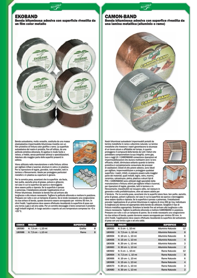 luce o raggi UV. I CAMONBAND consentono riparazioni ed