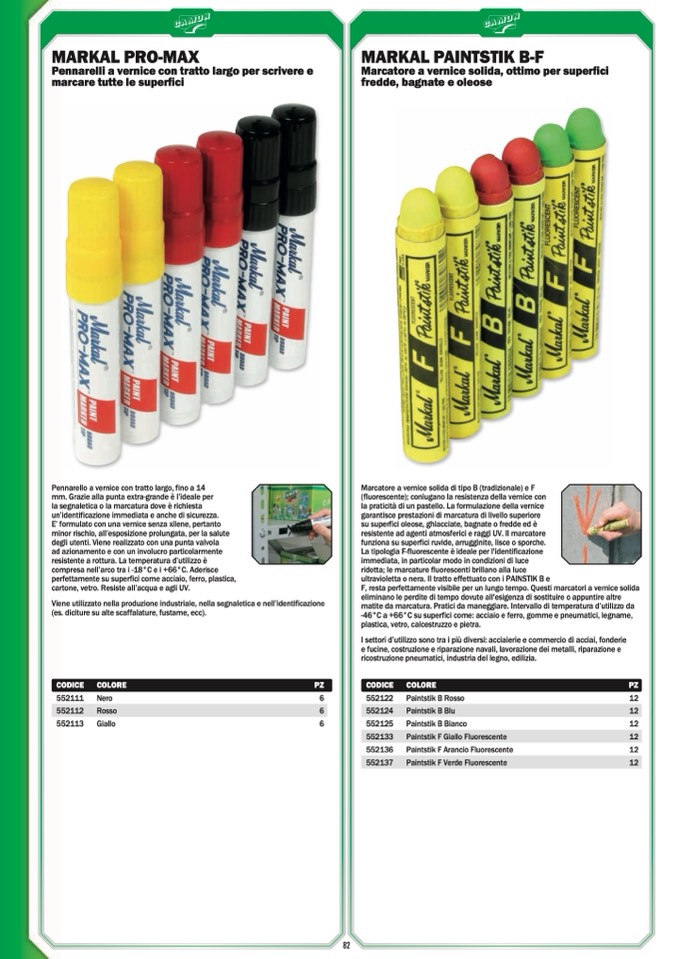 F, resta perfettamente visibile per un lungo tempo. Questi marcatori a vernice solida