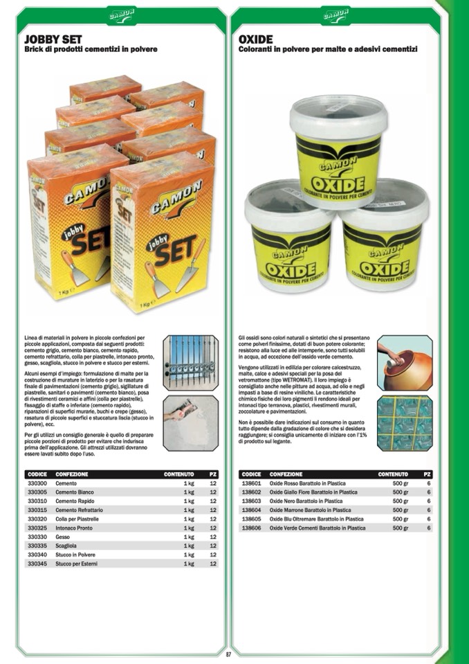 cemento refrattario, colla per piastrelle, intonaco pronto,