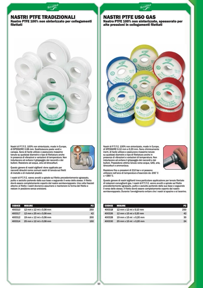 Questo genere di nastri sigillanti trova particolare applicazione per tenute filettate