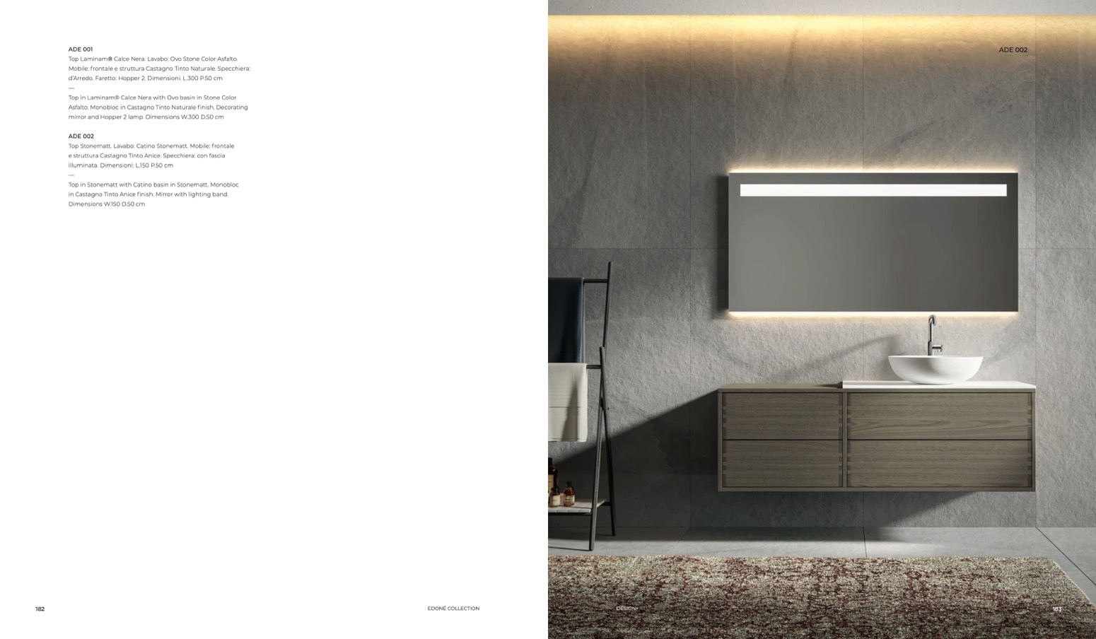 in Castagno Tinto Anice finish. Mirror with lighting band.