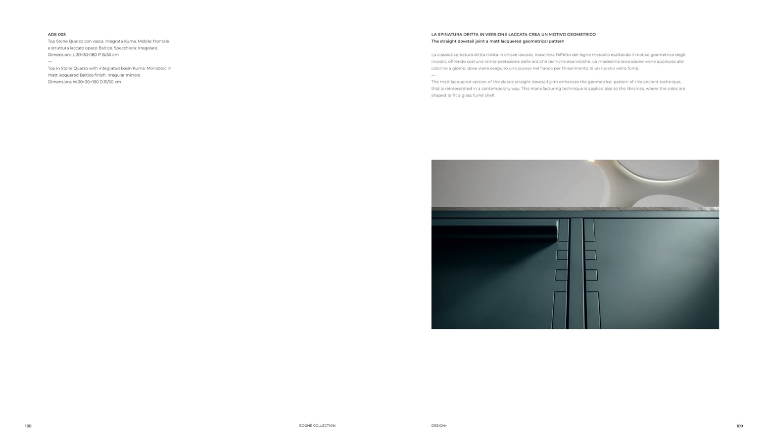 incastri, offrendo così una reinterpretazione delle antiche tecniche ebanistiche. La medesima lavorazione viene applicata alle