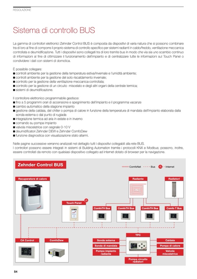 La gamma di controllori elettronici Zehnder Control BUS è composta da dispositivi di varia natura che si possono combinare