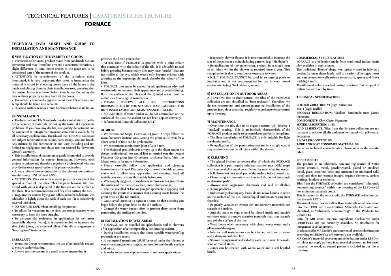 ATTENTION: Due to their nature, the tiles of the FORNACE