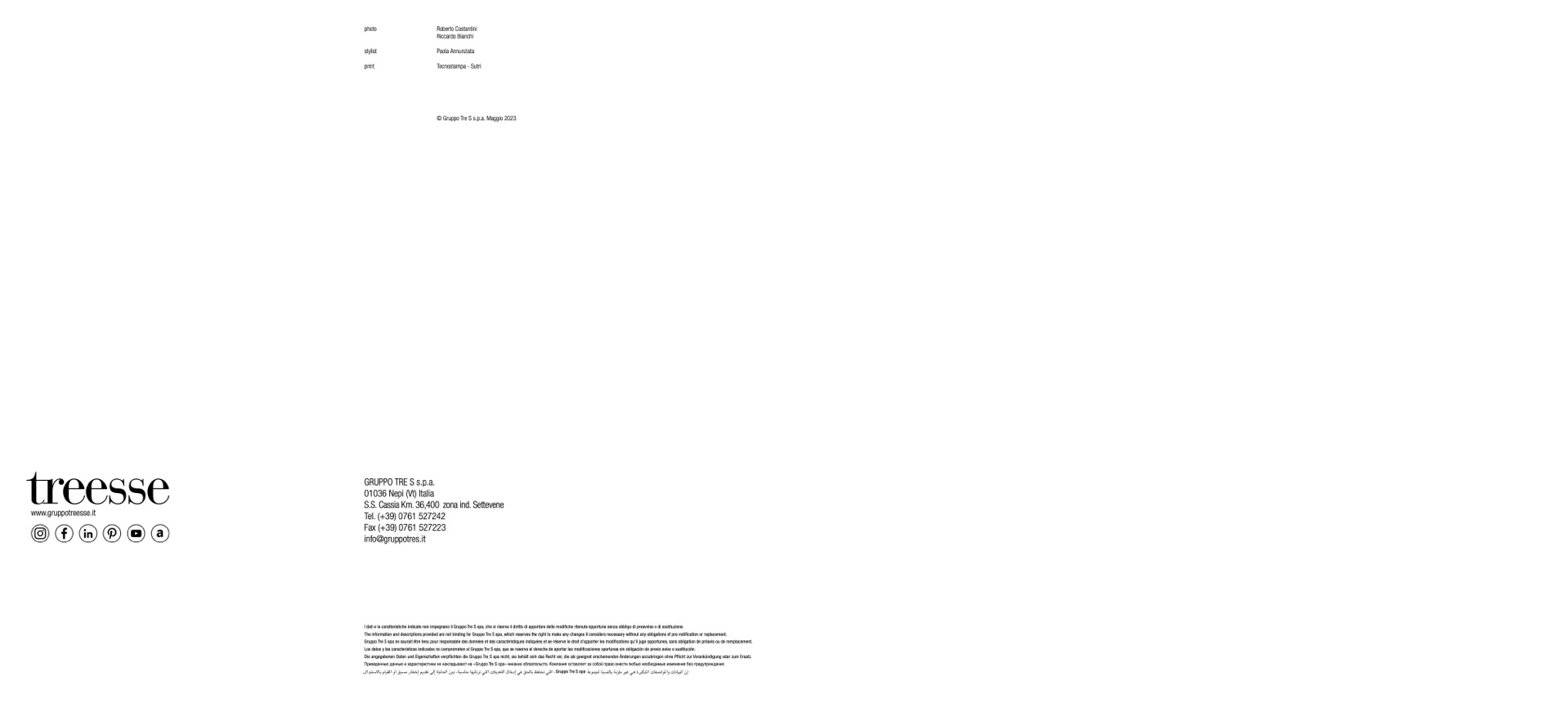 The information and descriptions provided are not binding for Gruppo Tre S spa, which reserves the right to make any changes it considers necessary without any obligations of pre-notification or replacement.