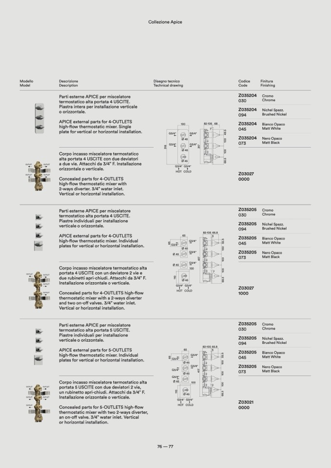 Parti esterne APICE per miscelatore