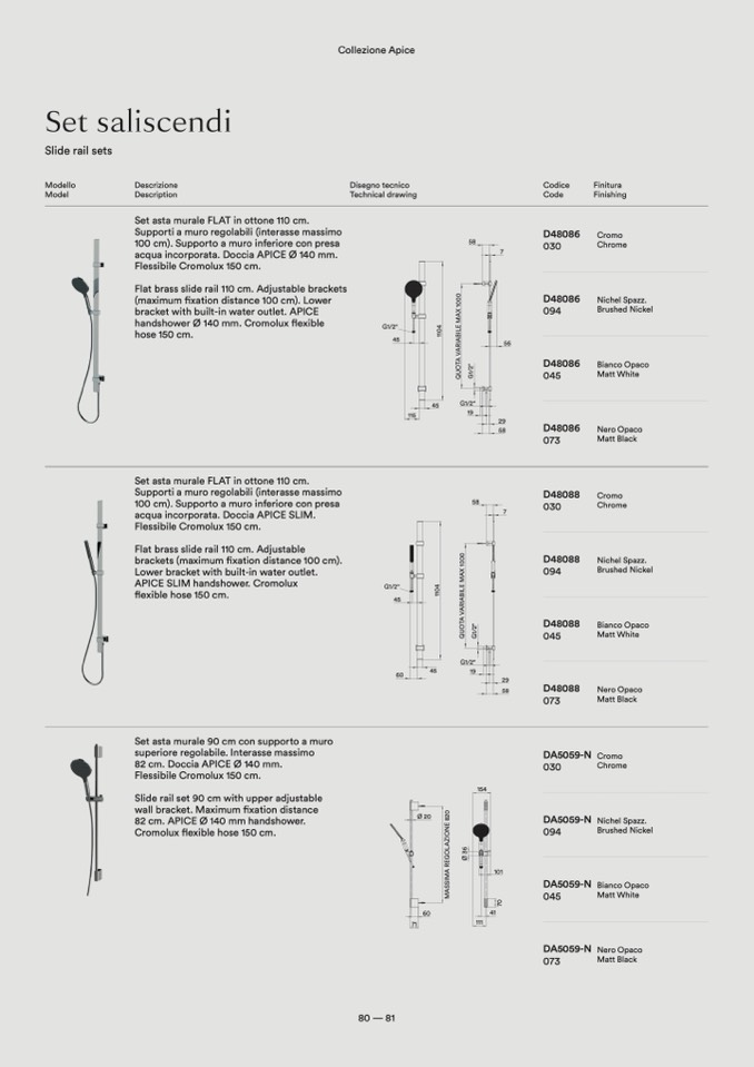 82 cm. APICE Ø 140 mm handshower.