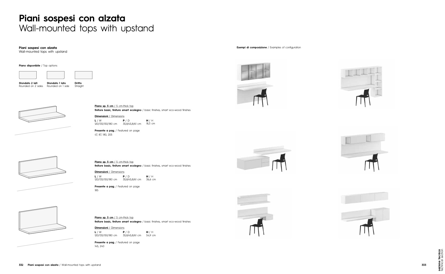 Piani sospesi con alzata / Wall-mounted tops with upstand