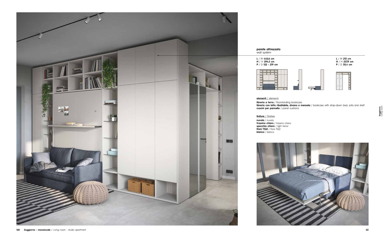 libreria con letto ribaltabile, divano e mensola / bookcase with drop-down bed, sofa and shelf