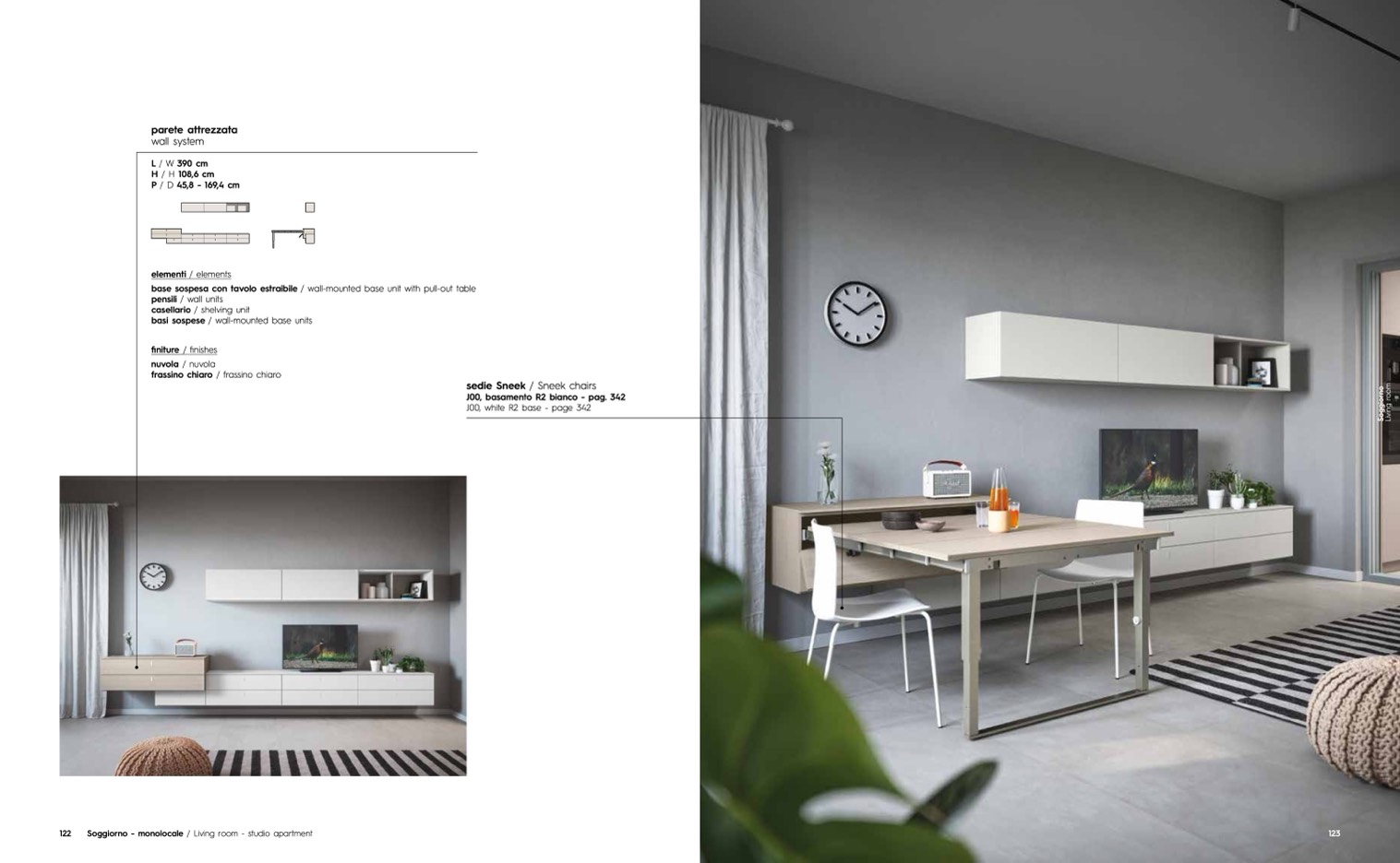 base sospesa con tavolo estraibile / wall-mounted base unit with pull-out table