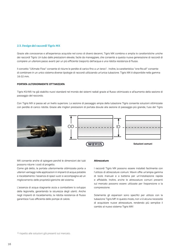 di combinare in un unico sistema diverse tipologie di raccordi utilizzando un’unica tubazione. Tigris MX