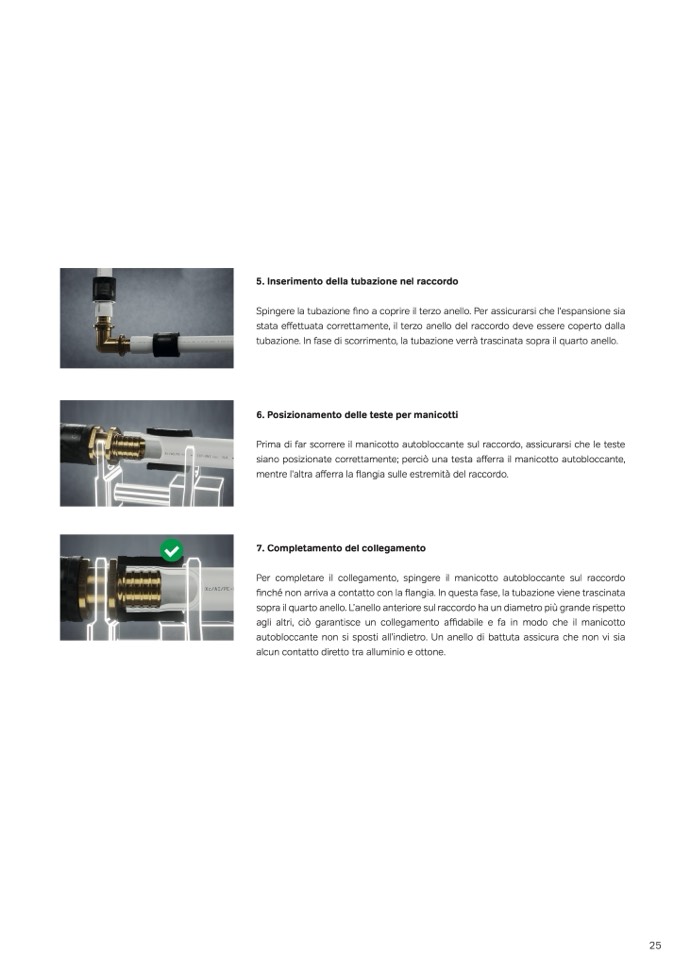 Prima di far scorrere il manicotto autobloccante sul raccordo, assicurarsi che le teste