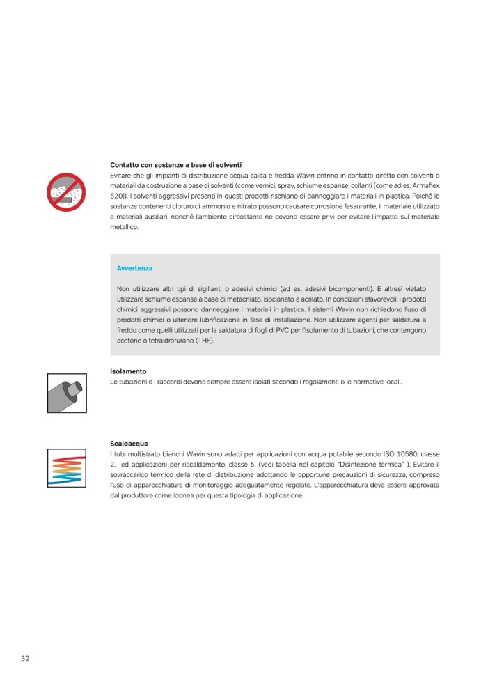 Evitare che gli impianti di distribuzione acqua calda e fredda Wavin entrino in contatto diretto con solventi o