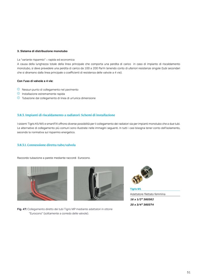 Fig. 47: Collegamento diretto dei tubi Tigris MP mediante adattatori in ottone