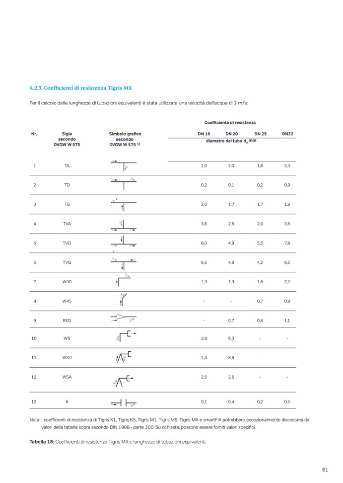 fficienti di resistenza Tigris MX e lunghezze di tubazioni equivalenti.