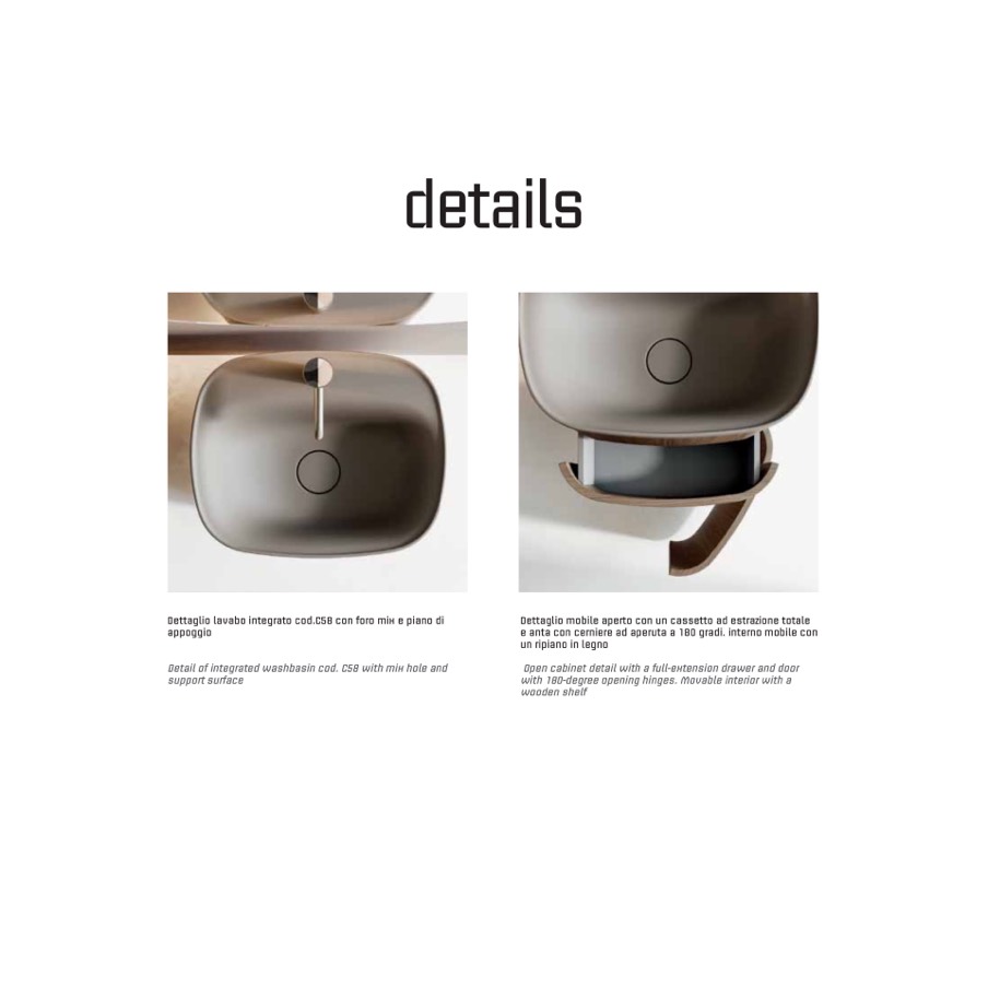 Dettaglio lavabo integrato cod.C58 con foro mix e piano di