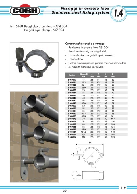 Art. 6160 Reggitubo a cerniera - AISI 304