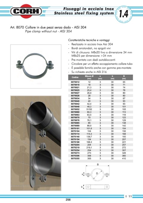 Art. 8070 Collare in due pezzi senza dado - AISI 304