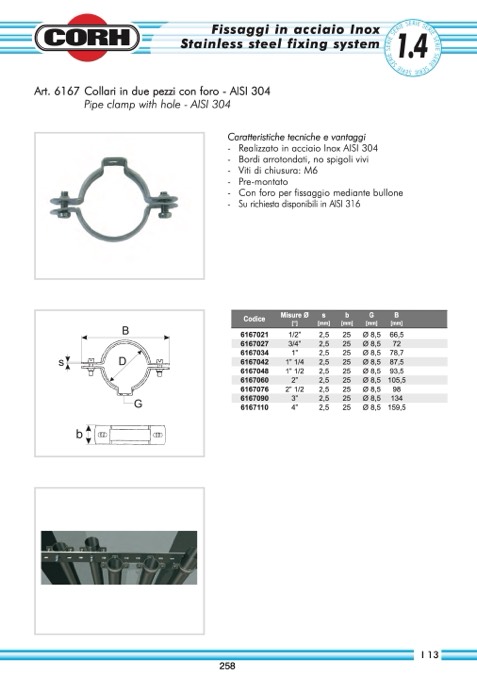 Art. 6167 Collari in due pezzi con foro - AISI 304