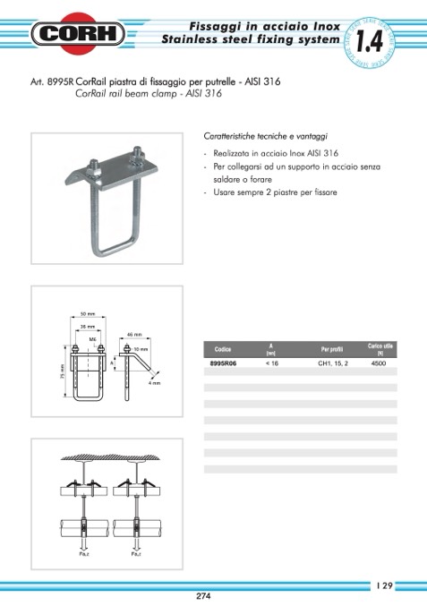 Art. 8995R CorRail piastra di fissaggio per putrelle - AISI 316
