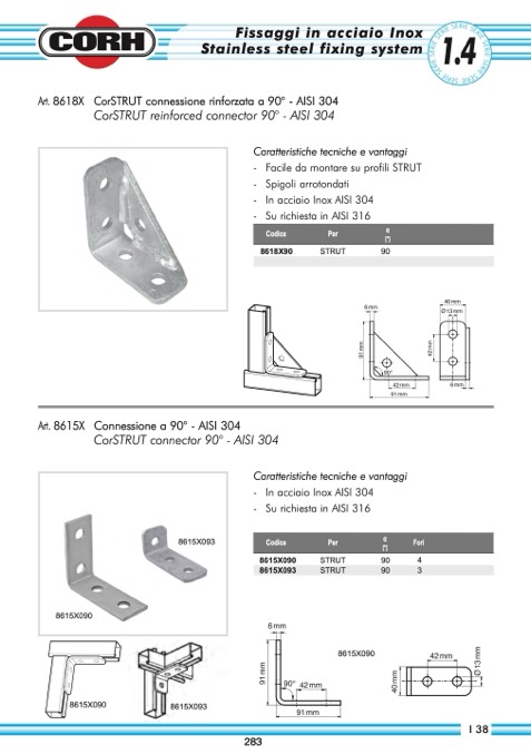 CorSTRUT connessione rinforzata a 90° - AISI 304