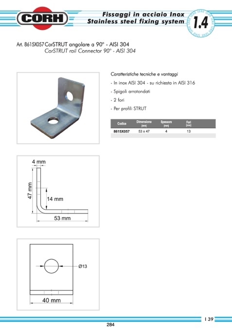 Art. 8615X057CorSTRUT angolare a 90° - AISI 304