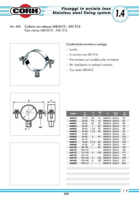 Collare con attacco M8/M10 - AISI 316
