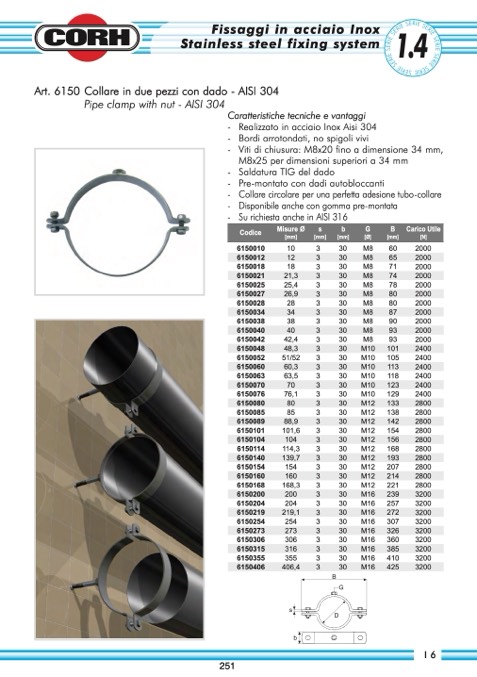 Art. 6150 Collare in due pezzi con dado - AISI 304