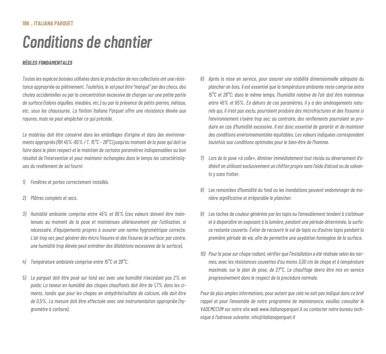VADEMECUM sur notre site web www.italianaparquet.it ou contacter notre bureau tech-