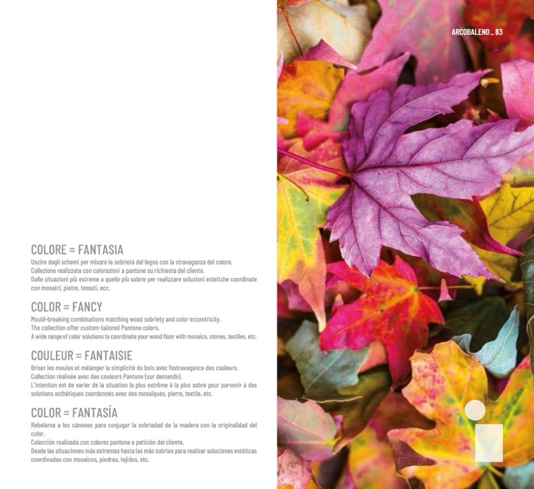 A wide range of color solutions to coordinate your wood floor with mosaics, stones, textiles, etc.