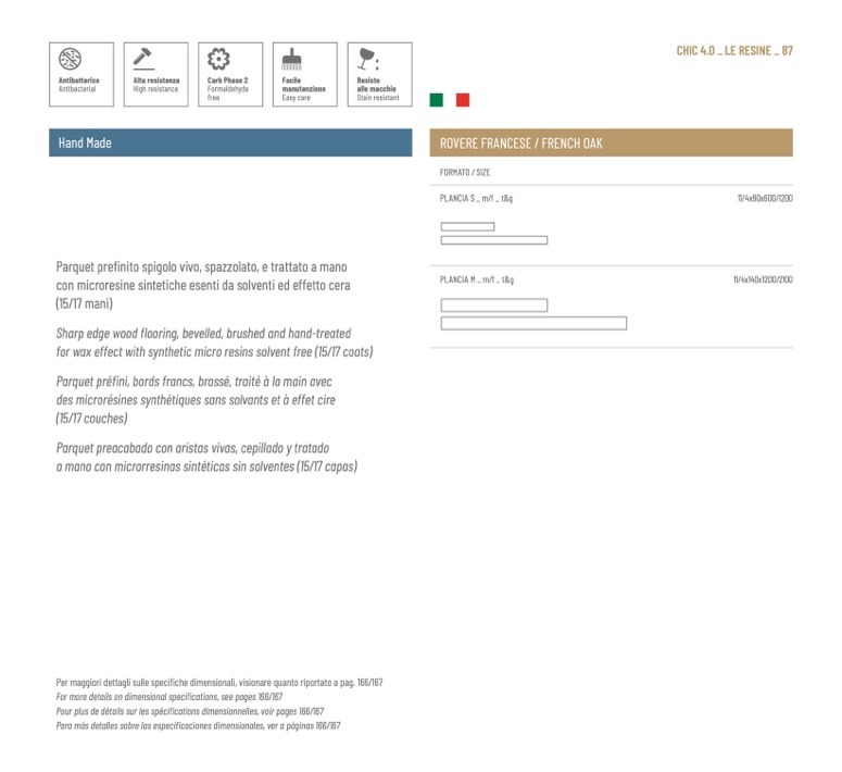 Parquet préfini, bords francs, brossé, traité à la main avec