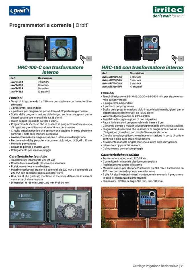 • Tempi di irrigazione da 1 a 240 min per stazione con 1 minuto di in-