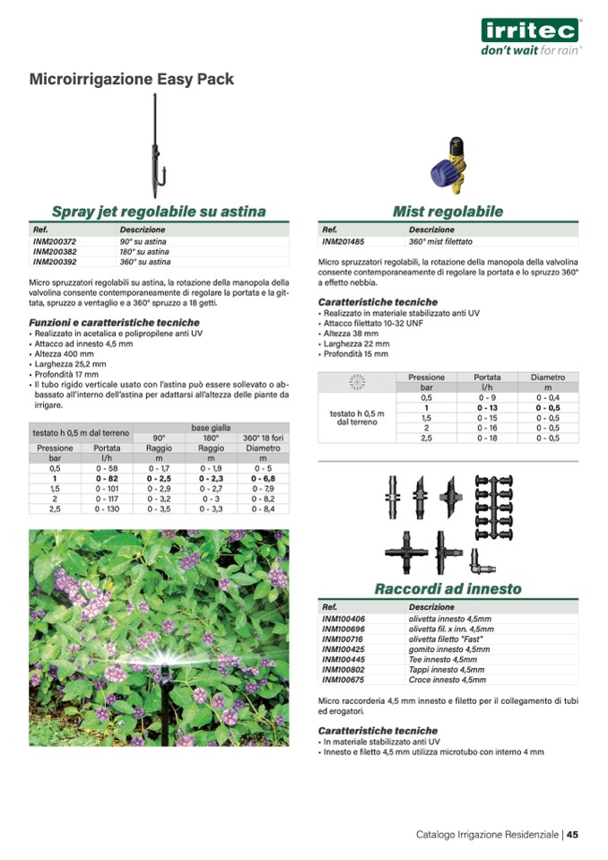 • Innesto e filetto 4,5 mm utilizza microtubo con interno 4 mm