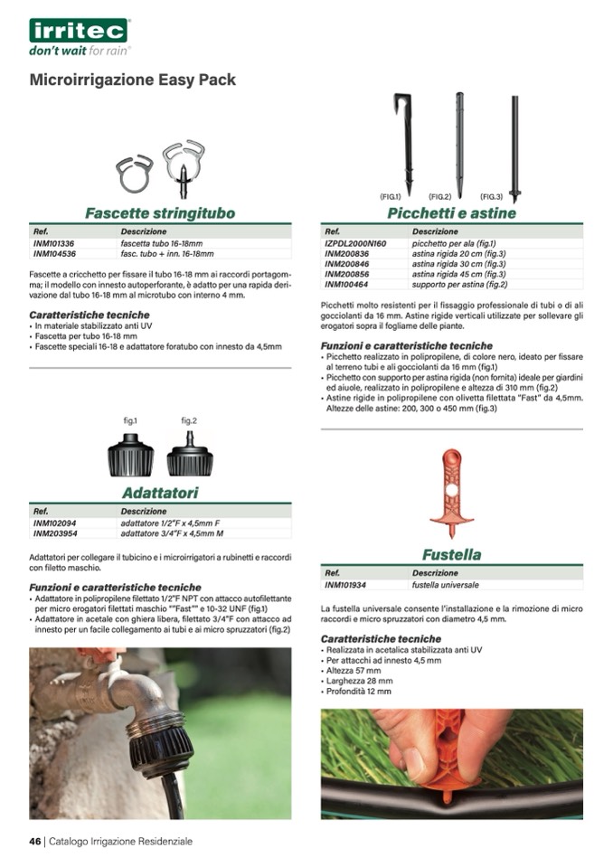 raccordi e micro spruzzatori con diametro 4,5 mm.