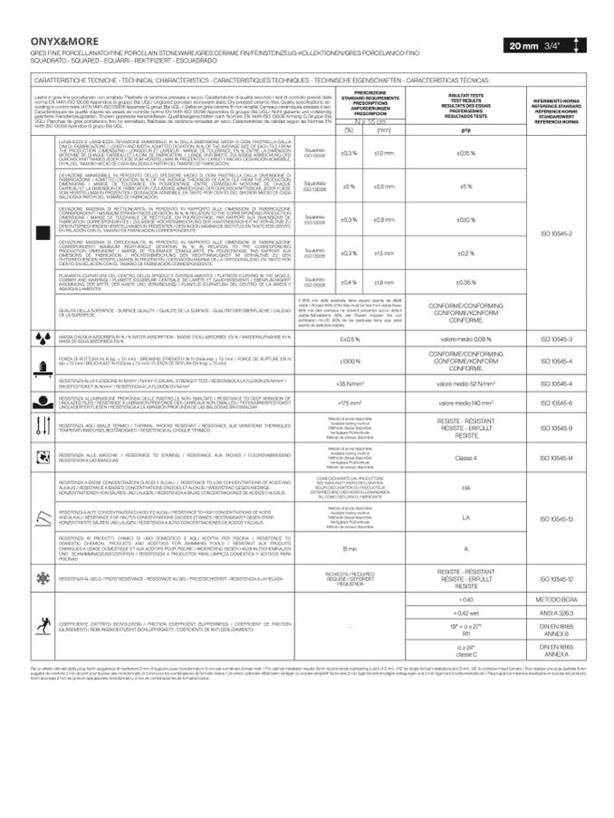 norma EN 14411-ISO 13006 Appendice G gruppo BIa UGL/ Unglazed porcelain stoneware slabs. Dry-pressed ceramic tiles. Quality speci