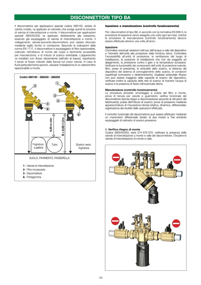 Per i disconnettori di tipo BA, in accordo con la normativa EN 806-5, le