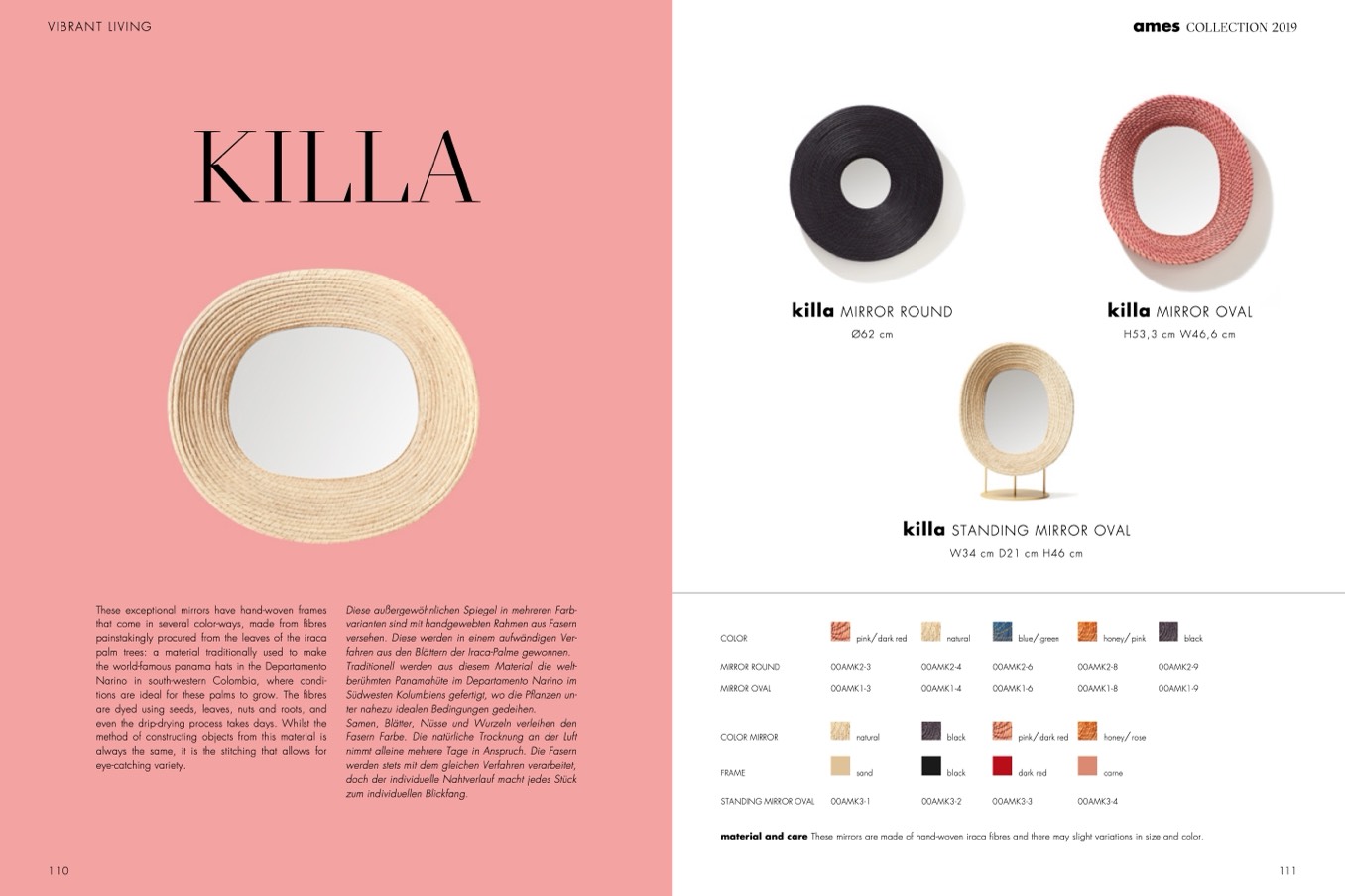 material and care These mirrors are made of hand-woven iraca fibres and there may slight variations in size and color.