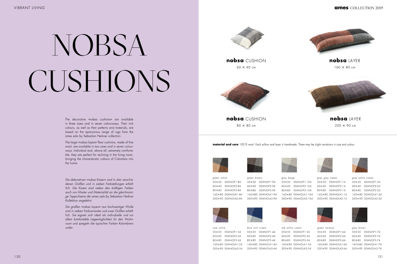 material and care 100 % wool. Each pillow and layer is handmade. There may be slight variations in size and colour.