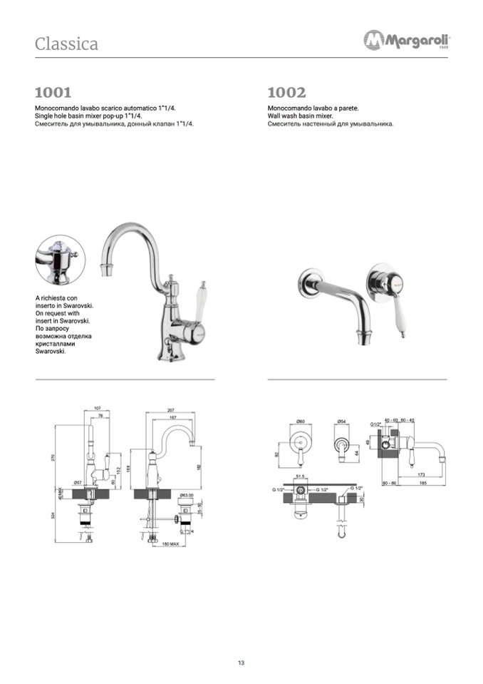 Monocomando lavabo scarico automatico 1”1/4.