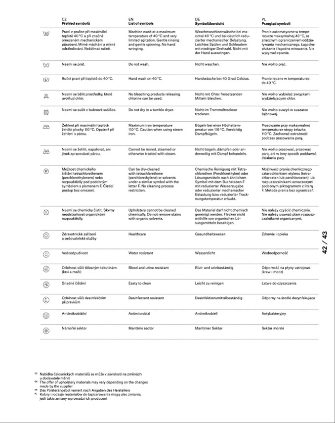 Nabídka čalounických materiálů se může v závislosti na změnách