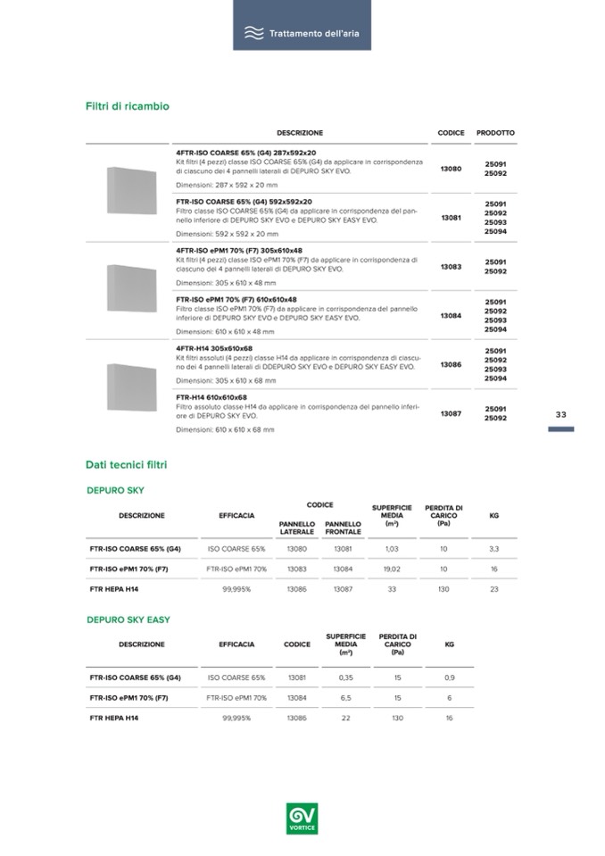 Kit filtri (4 pezzi) classe ISO ePM1 70% (F7) da applicare in corrispondenza di