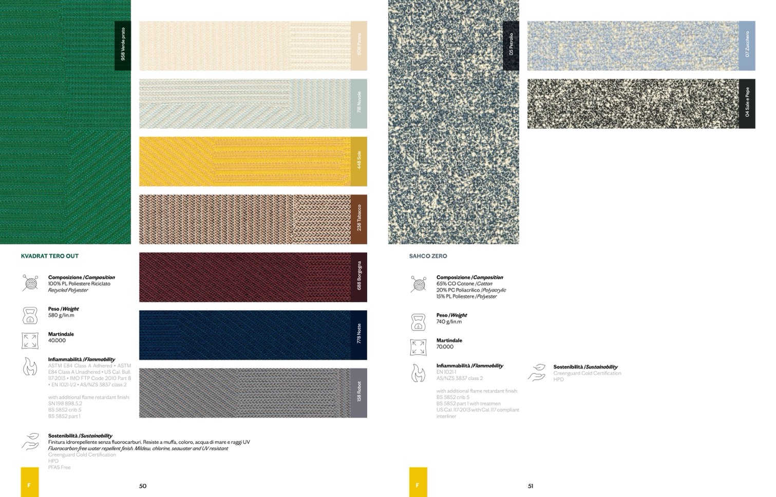 Finitura idrorepellente senza fluorocarburi. Resiste a muffa, coloro, acqua di mare e raggi UV