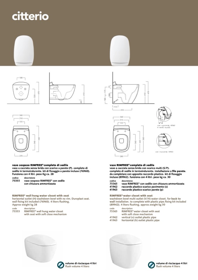 sedile in termoindurente. kit di fissaggio a parete incluso (76960).