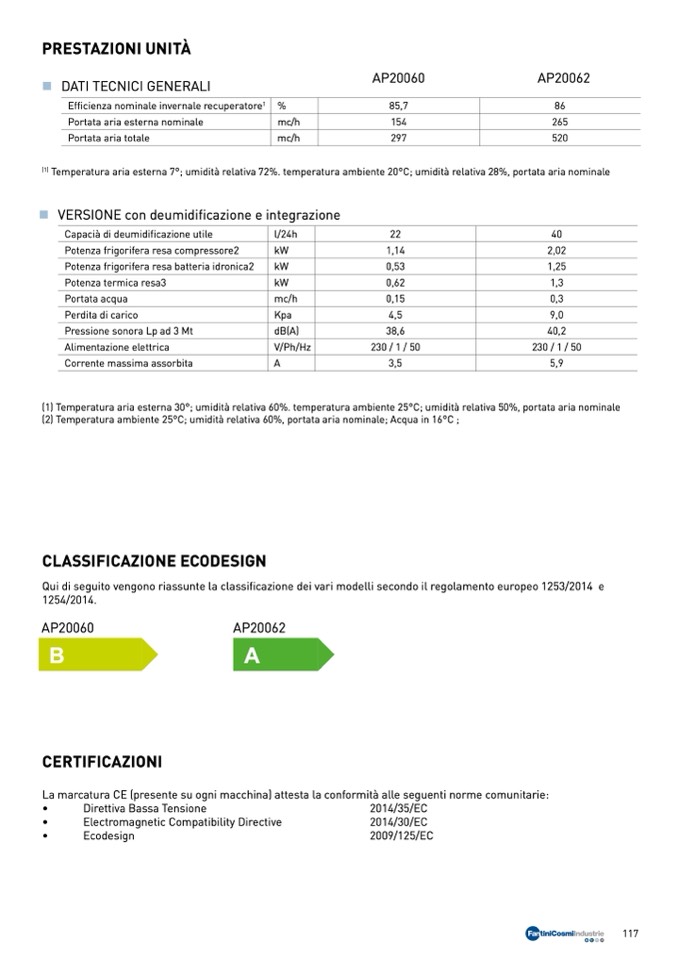 (1) Temperatura aria esterna 30°; umidità relativa 60%. temperatura ambiente 25°C; umidità relativa 50%, portata aria nominale