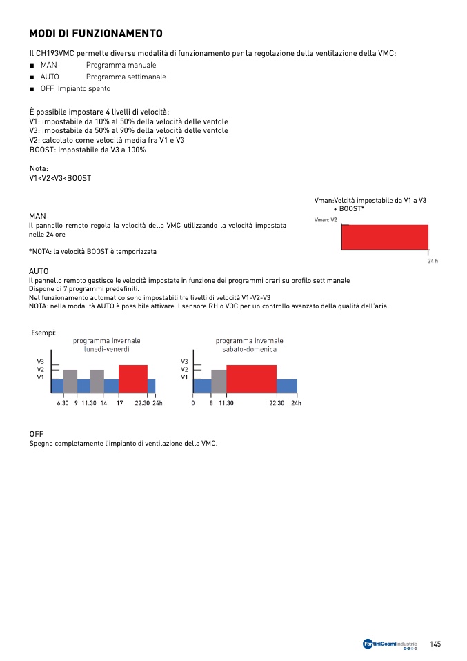 Nel funzionamento automatico sono impostabili tre livelli di velocità V1-V2-V3