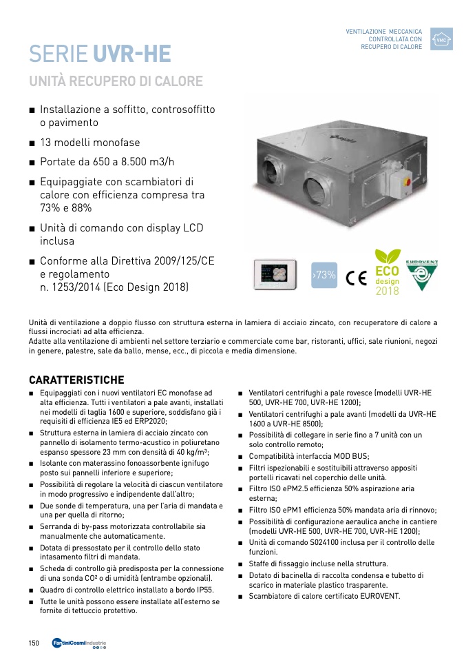 alta efficienza. Tutti i ventilatori a pale avanti, installati