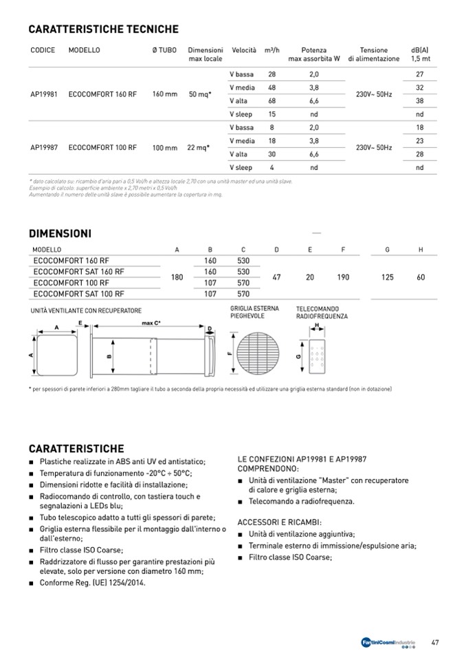 * dato calcolato su: ricambio d'aria pari a 0,5 Vol/h e altezza locale 2,70 con una unità master ed una unità slave.