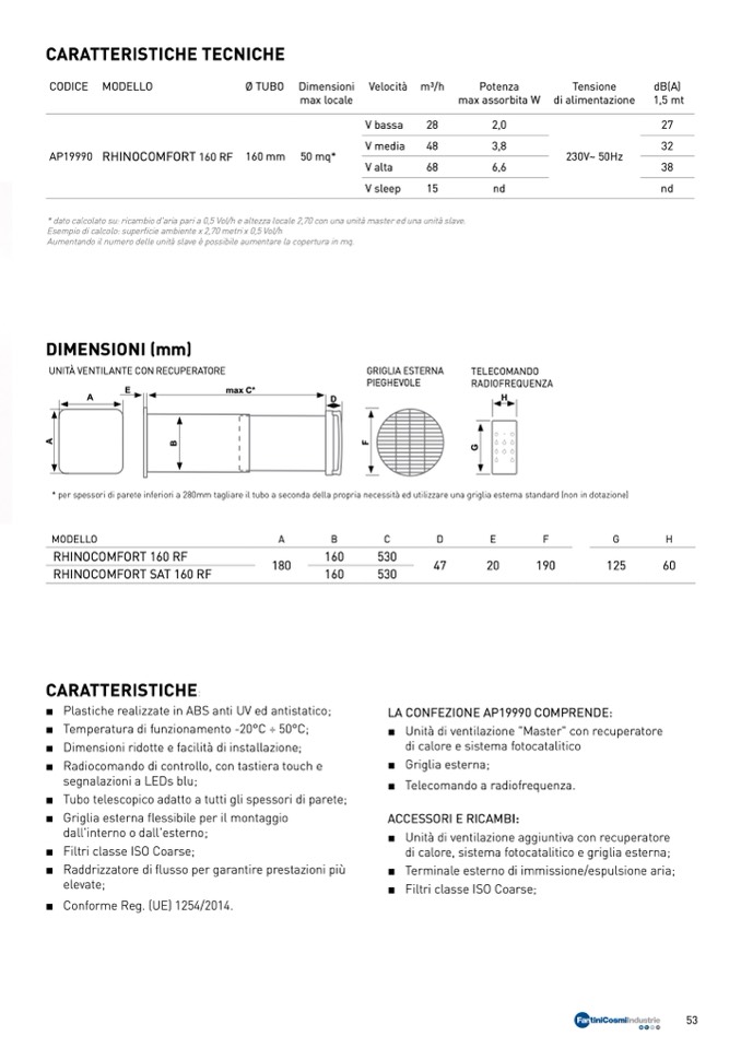 * dato calcolato su: ricambio d'aria pari a 0,5 Vol/h e altezza locale 2,70 con una unità master ed una unità slave.
