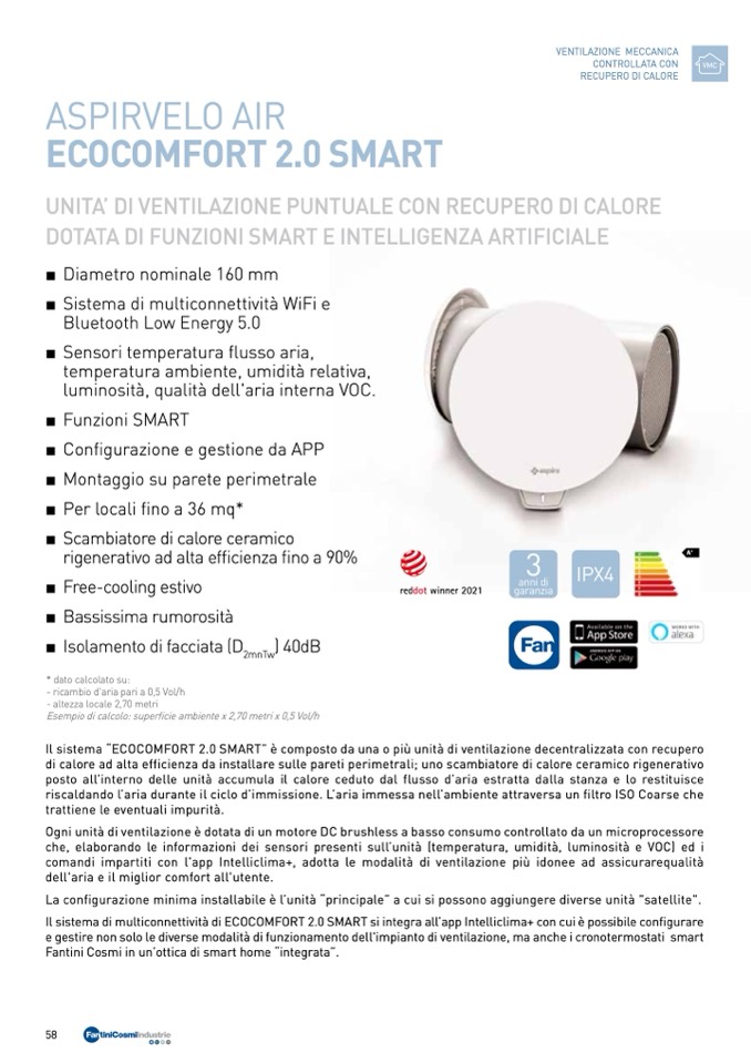 Il sistema “ECOCOMFORT 2.0 SMART” è composto da una o più unità di ventilazione decentralizzata con recupero