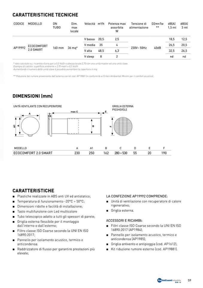 ** Riduzione del rumore proveniente dall'esterno con kit cod. AP19881 (in conformità ai Criteri Ambientali Minimi per il comfort acustico).